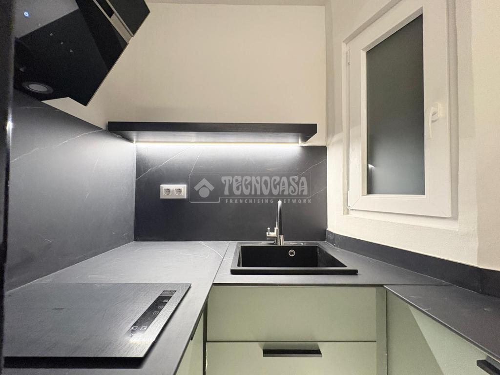 Este piso cuenta un dormitorio amueblado con un soporte de obra para la cama y un armario empotrado, perfecto para almacenamiento. La vivienda ha sido reformada en el año 2025 con todas las comodidades necesarias, con materiales de primera calidad.