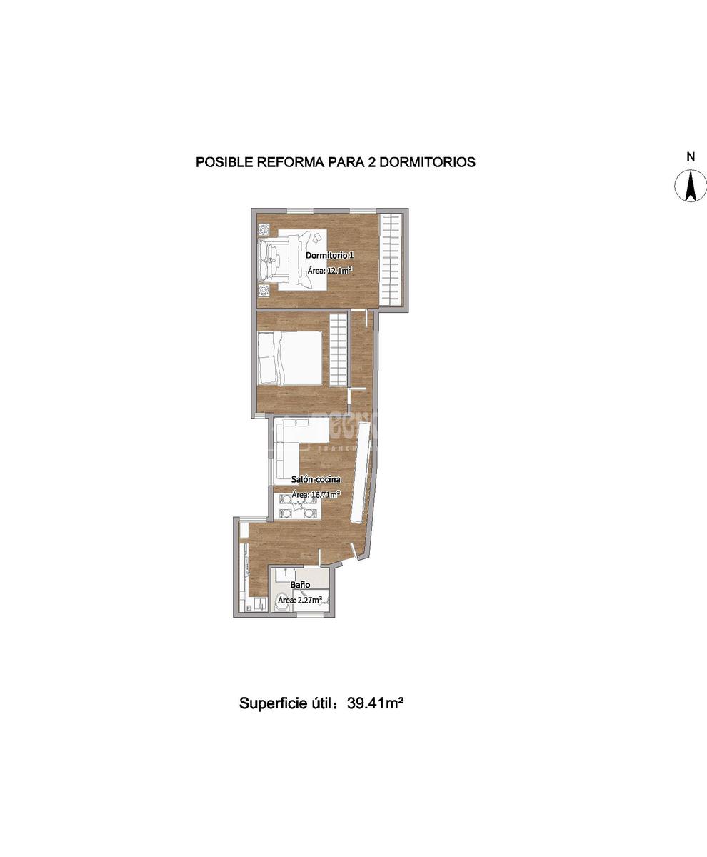 Al entrar, pasas directamente al salón-comedor donde destaca la amplitud y luminosidad del mismo. Lo atractivo de la vivienda es su potencial de reforma para convertirlo en dos dormitorios espaciosos, donde los ambientes del piso tienen ventanas, permitiendo en todo momento la ventilación cruzada, así como también su ubicación cercana a la estación de Atocha.